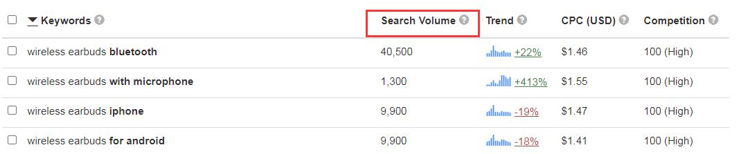 But if your wireless earbuds have a microphone and you put that in your product title, when people searching for “wireless earbuds with microphone”, they’ll find half the number of results as the above case, which is 5,000.